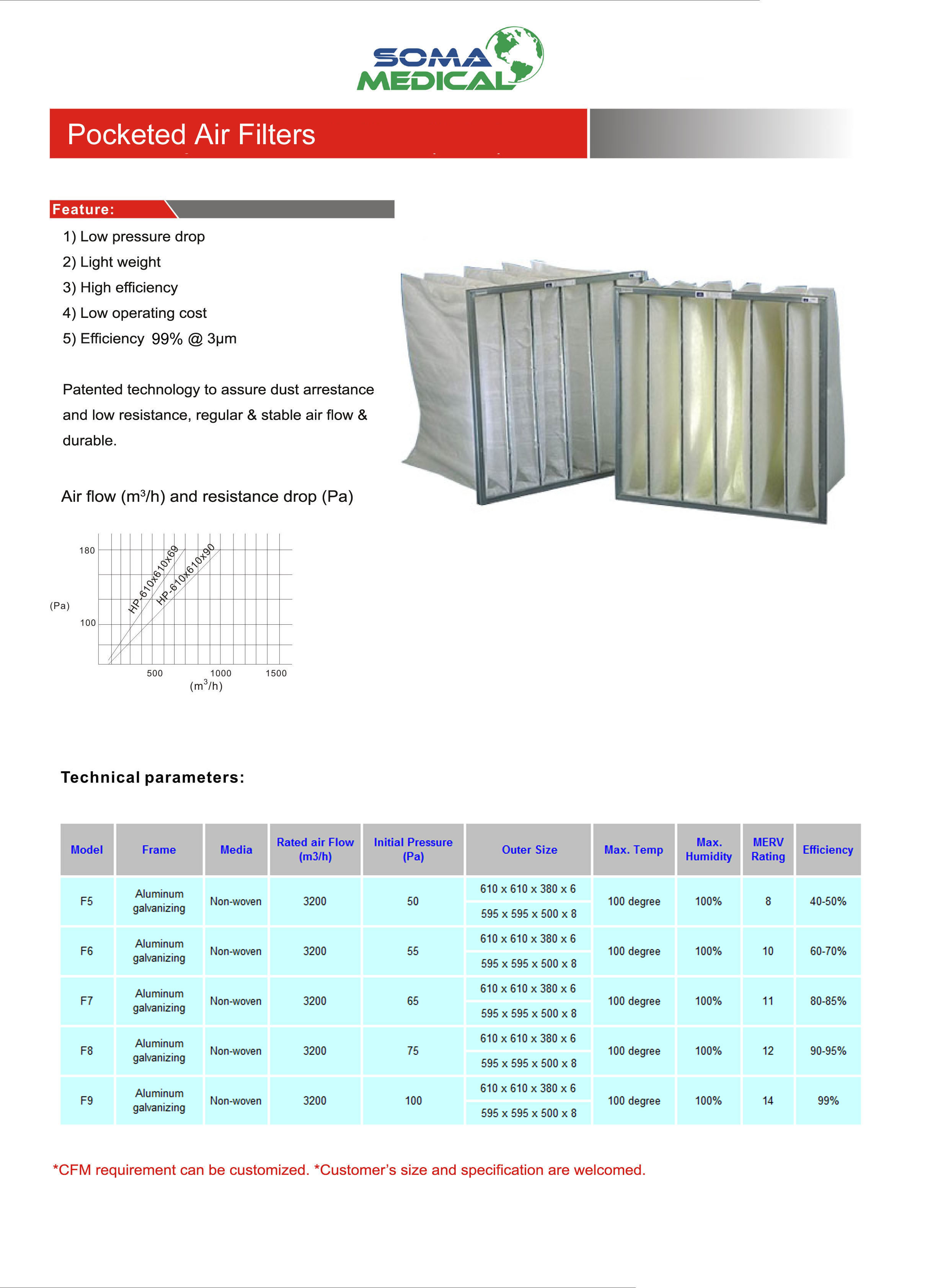 Patented technology to assure dust arrestance and low resistance, regular & stable air flow & durable